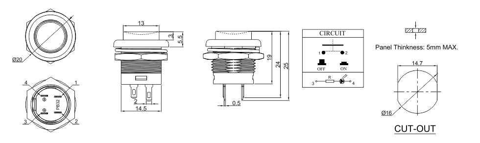 Function:OFF-(ON) ON-OFF