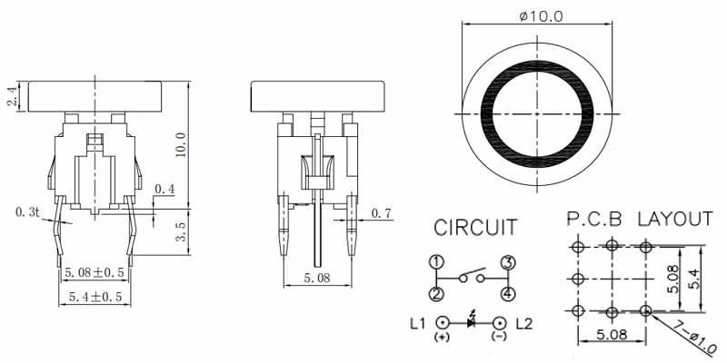 帶燈輕觸開關(guān)TS1-00-6AR-2C-2S