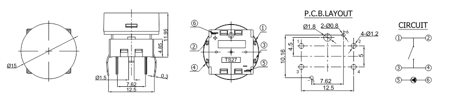 帶燈輕觸開(kāi)關(guān)TS27-1-TW-R-S