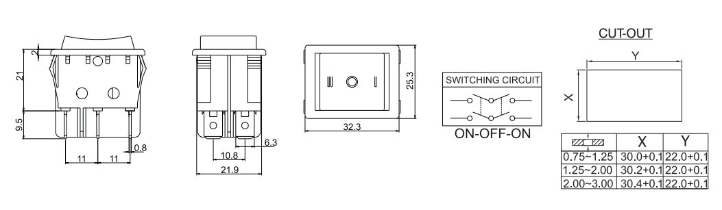 • 船型開關(guān)R230-C6N-BB